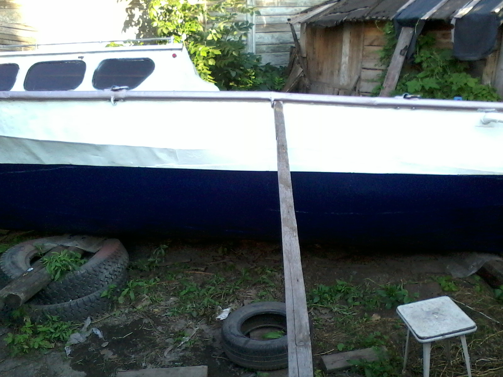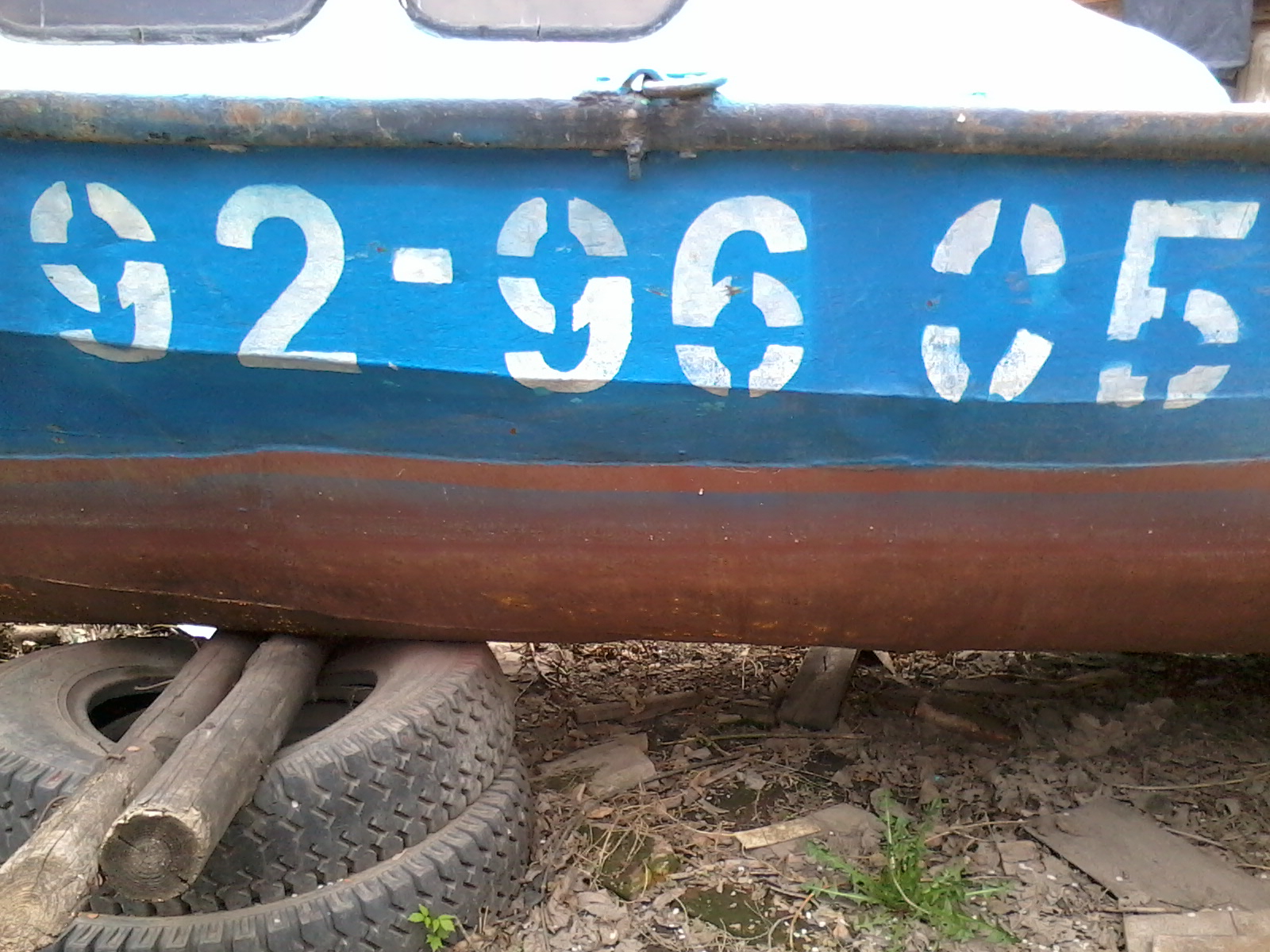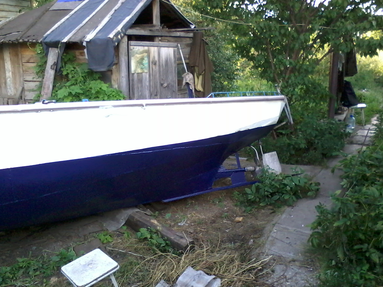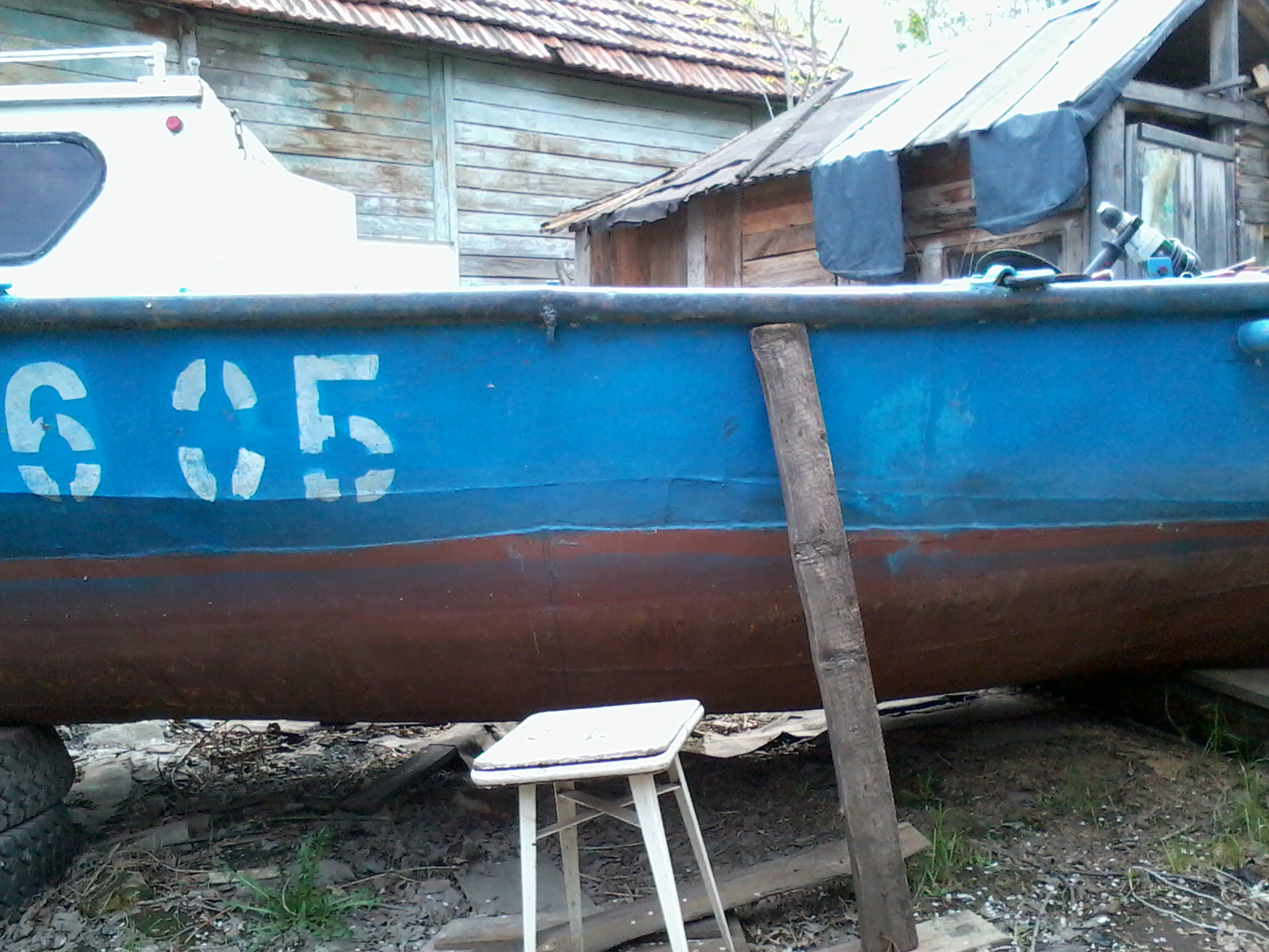Ну подарок подарком. А до ума все равно надо доводить. Прежний хозяин строго традиционно каждый год красил днище одним слоем «Спецназа». Достаточно логично рассуждая, что на год и так хватит. Но у него под рукой есть а) автокран, б)тягач с телегой в) место с электричеством и даже удобствами. У меня этого пока нет. Значит надо затевать малярные работы «по взрослому». Чтоб покрытия хватило лет на пять. Уж за это время я что нибудь придумаю по любому.
