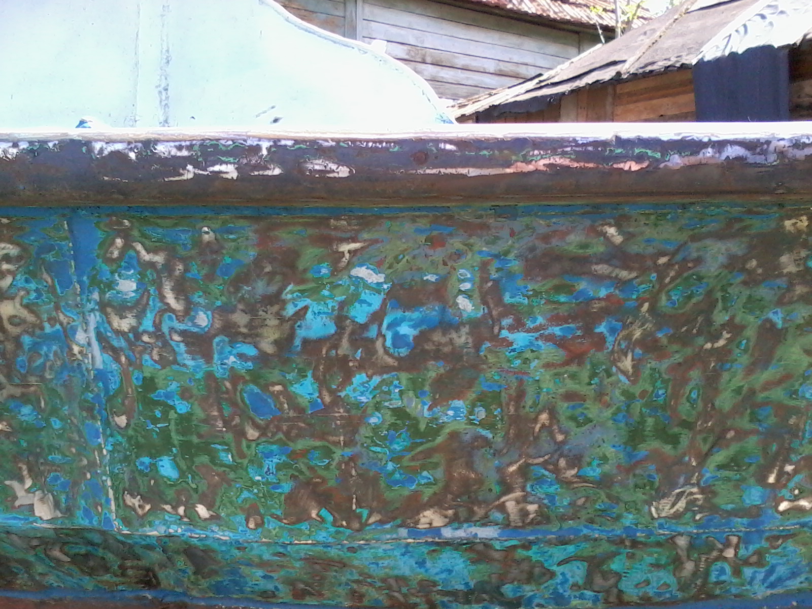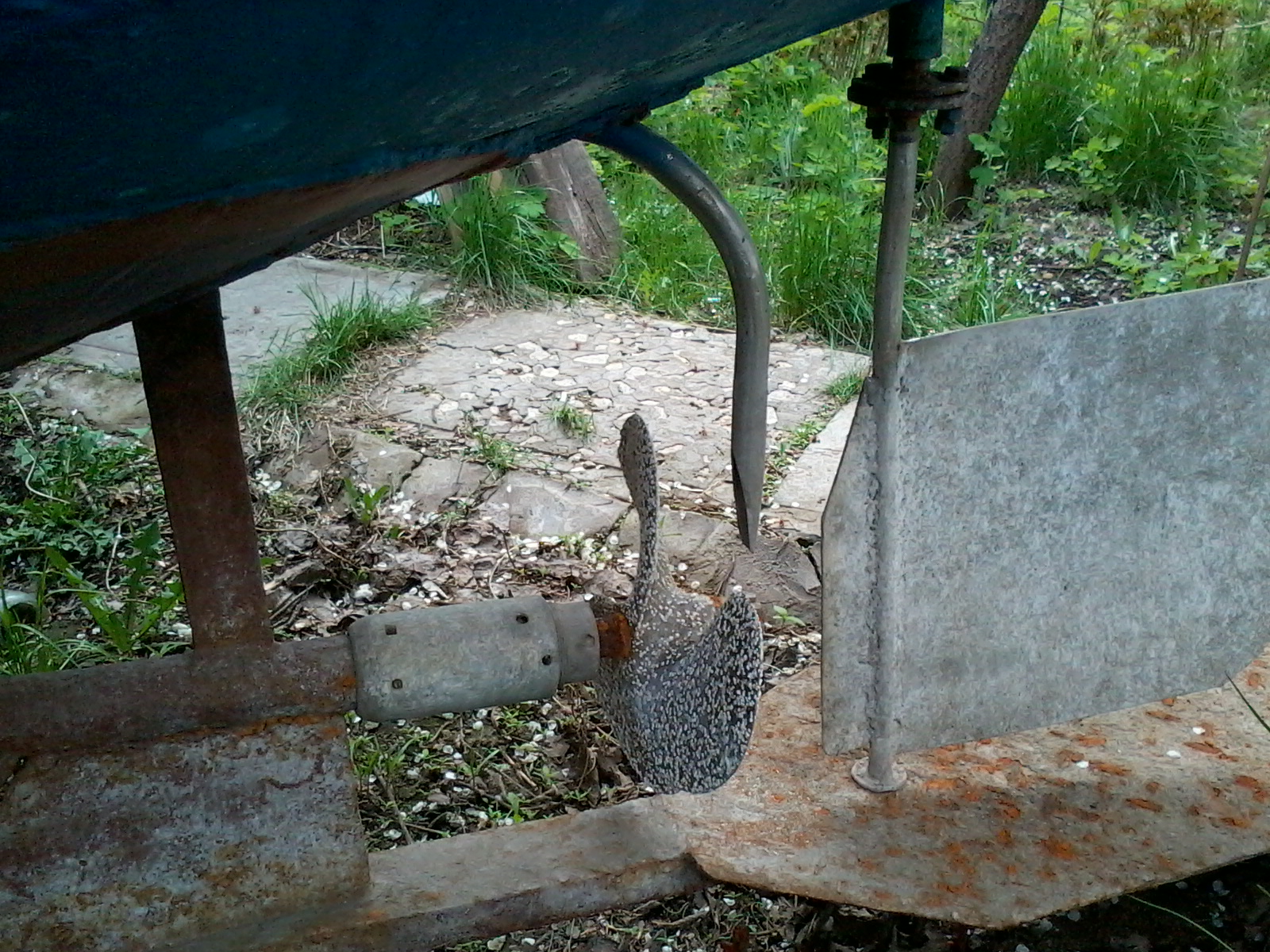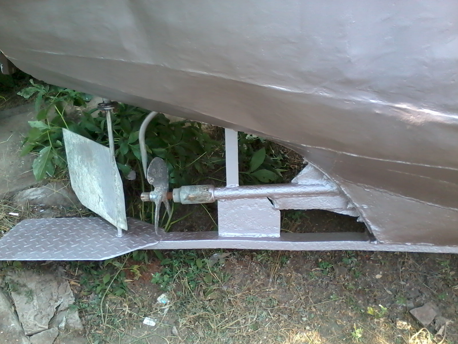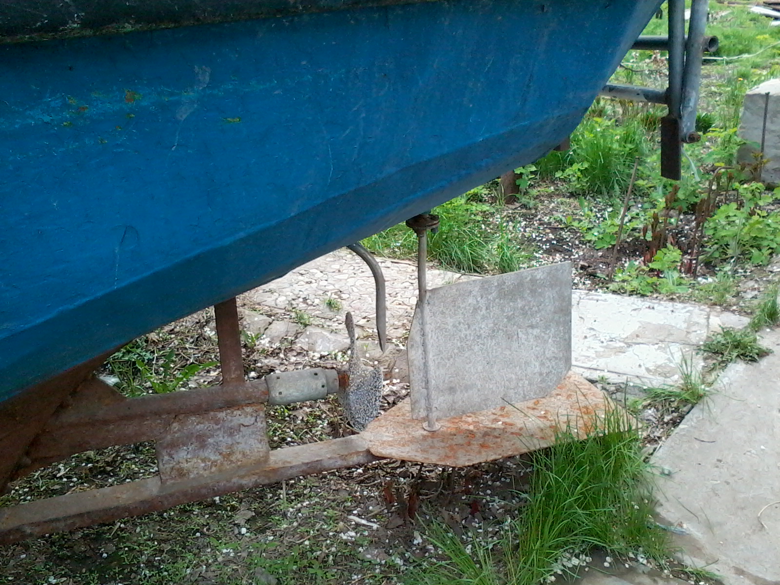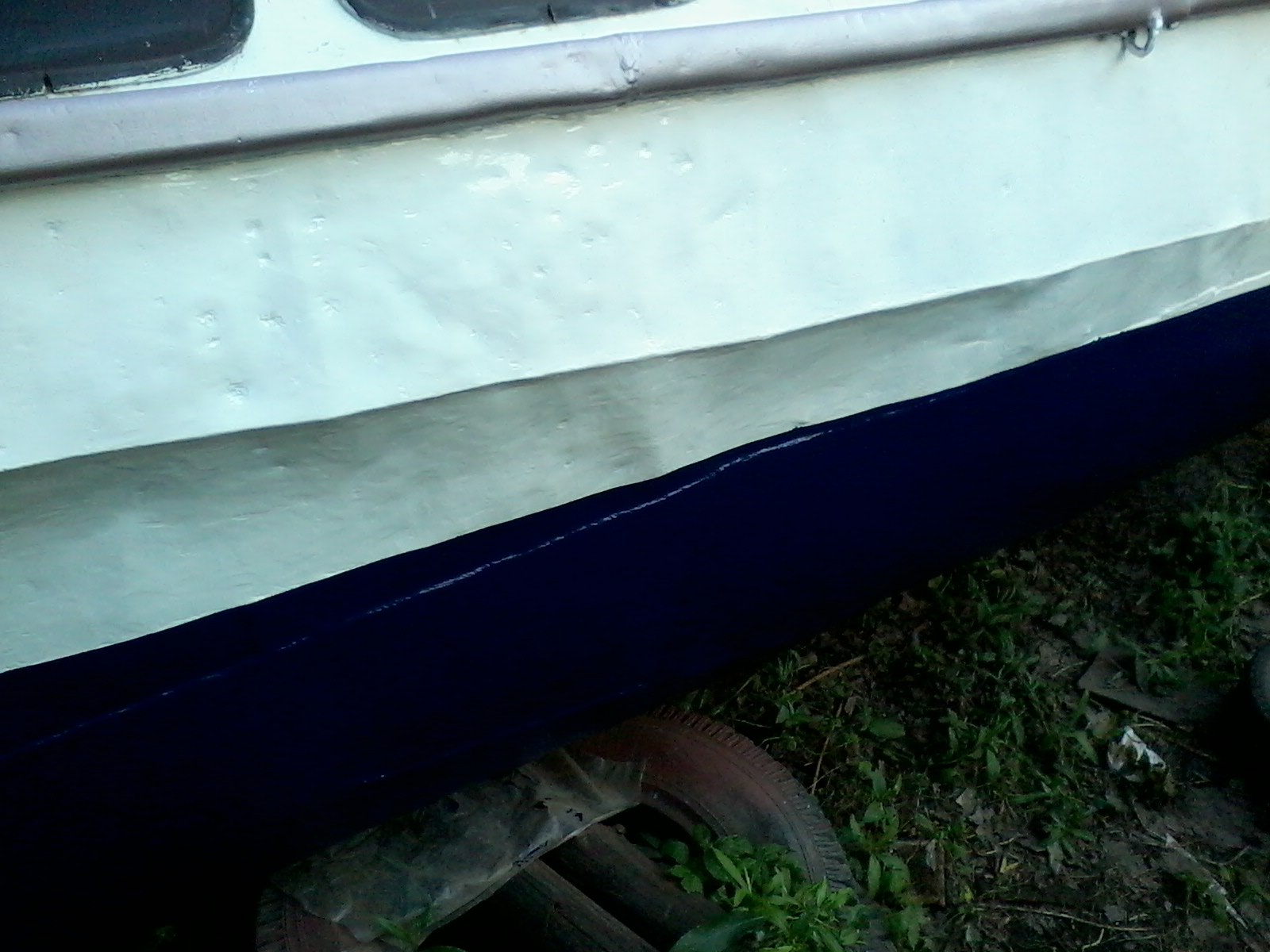 Ну подарок подарком. А до ума все равно надо доводить. Прежний хозяин строго традиционно каждый год красил днище одним слоем «Спецназа». Достаточно логично рассуждая, что на год и так хватит. Но у него под рукой есть а) автокран, б)тягач с телегой в) место с электричеством и даже удобствами. У меня этого пока нет. Значит надо затевать малярные работы «по взрослому». Чтоб покрытия хватило лет на пять. Уж за это время я что нибудь придумаю по любому.